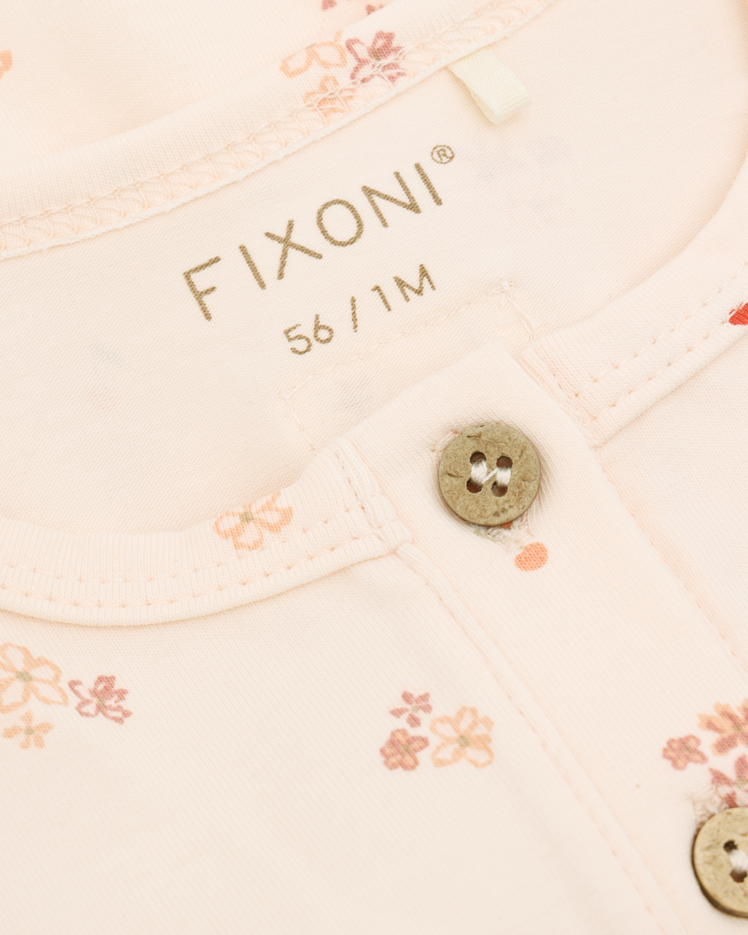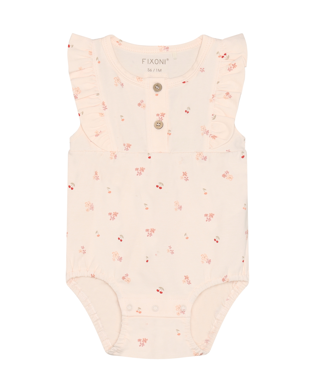 Maatadvies: Jumpsuit van FIXONI. De jumpsuit is volledig bedrukt en heeft een knoopsluiting aan de voorkant. De ruches op de schouders geven de jumpsuit een vrouwelijke uitstraling. Gecertificeerd volgens GOTS – biologisch CERES-0366. Gecertificeerd volgens OEKO-TEX® STANDARD 100. Certificaatnummer 2276-364 DTI.