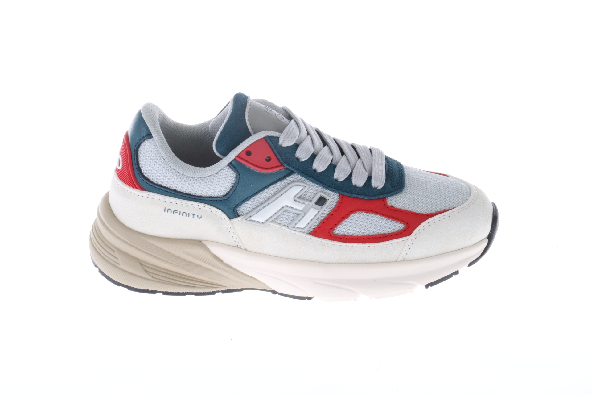 Maatadvies: Een stoere, hippe look! Dit zijn de leren HIP sneakers in het wit leer met rode en donkerblauwe details aan de zijkant. Hij heeft grove perforaties op de neus en een merkje op de tussenzool. Deze schoen valt normaal uit. Het heeft een witte zool. De schoen heeft een grijze veter en een rits aan de zijkant waardoor deze gemakkelijk aan en uit te doen is.