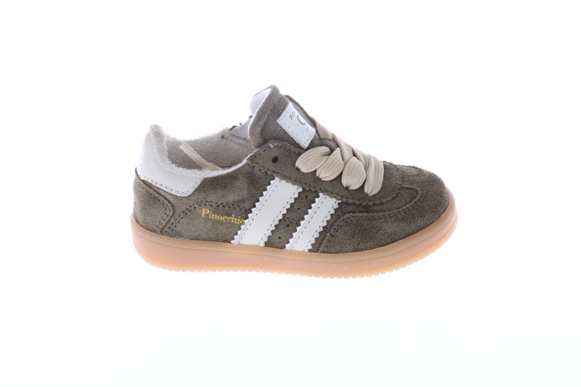Pinocchio sneaker – olijfgroen met witte strepen